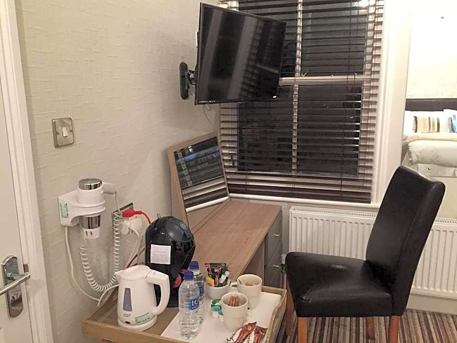 Rooms feature a large flat-screen Smart TV with Freeview TV channels, tea/coffee making facilities and a complimentary selection of biscuits, chocolates and sweets. Rooms also include free high-speed broadband WiFi and individual heating control. A compact en suite shower room and complimentary toiletries are included. All rooms are nonsmoking, outward facing and accessible by elevator.